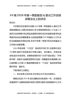 XX镇2026年第一季度基层党建重点工作安排部署会议上的讲话.docx