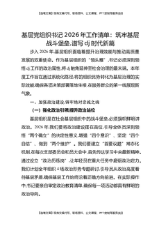 基层党组织书记2026年工作清单:筑牢基层战斗堡垒,谱写党建时代新篇.docx