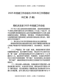 2025年党建工作总结与2026年工作思路材料汇编(5篇).docx
