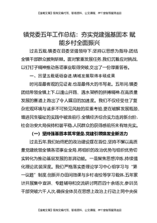 镇党委五年工作总结:夯实党建强基固本赋能乡村全面振兴.docx