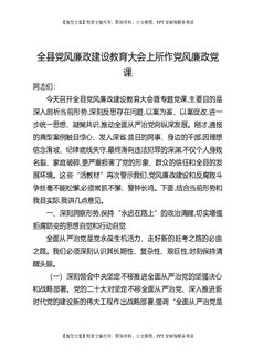 全县党风廉政建设教育大会上所作党风廉政党课.docx