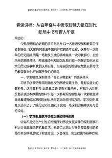 党课讲稿:从百年奋斗中汲取智慧力量在时代新局中书写育人华章.docx