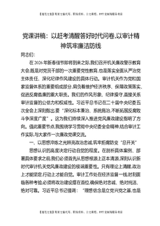 党课讲稿:以赶考清醒答好时代问卷,以审计精神筑牢廉洁防线.docx