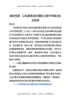 廉政党课:以如履薄冰的清醒,扛稳守牢廉洁安全底线.docx