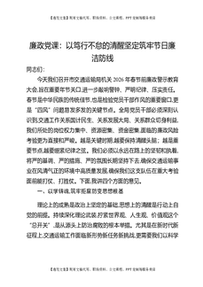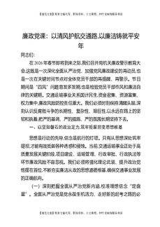 廉政党课:以清风护航交通路,以廉洁铸就平安年.docx