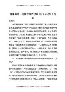 党课讲稿:树牢正确Z绩观,践行人民至上理念.docx