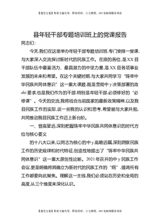 县年轻干部专题培训班上的党课报告.docx