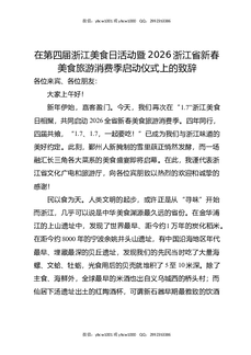在第四届浙江美食日活动暨2026浙江省新春美食旅游消费季启动仪式上的致辞.docx