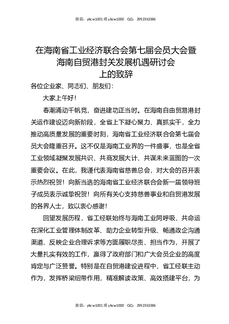在海南省工业经济联合会第七届会员大会暨海南自贸港封关发展机遇研讨会上的致辞.docx