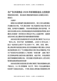 在广东洪湖商会2026年新春联谊会上的致辞.docx