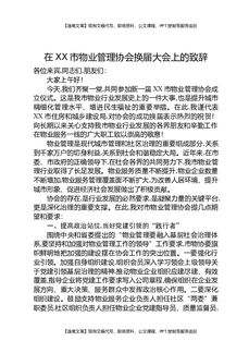 XX市物业管理协会换届大会上的致辞.docx
