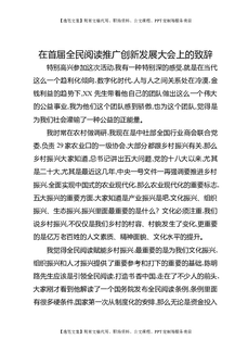 在首届全民阅读推广创新发展大会上的致辞.docx