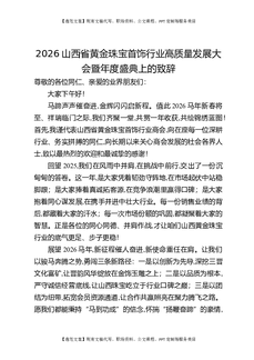 2026山西省黄金珠宝首饰行业高质量发展大会暨年度盛典上的致辞.docx