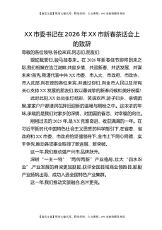 XX市委书记在2026年XX市新春茶话会上的致辞.docx