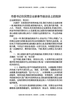 市委书记在民营企业家春节座谈会上的致辞.docx
