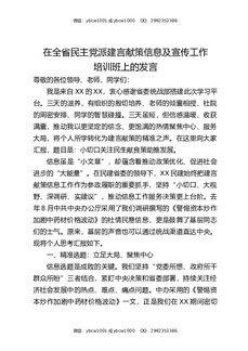 在全省民主党派建言献策信息及宣传工作培训班上的发言