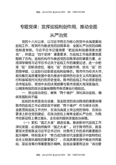 专题党课:发挥巡视利剑作用,推动全面从严治党.docx