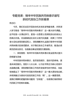 专题党课:铸牢中华民族共同体意识谱写新时代政协工作新篇章.docx
