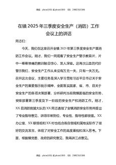 在镇2025年三季度安全生产消防工作会议上的讲话.docx
