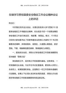在镇学习贯彻县委安全稳定工作会议精神会议上的讲话.docx