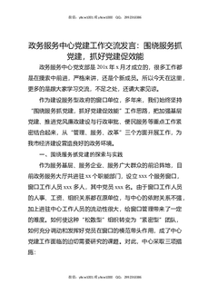 政务服务中心党建工作交流发言:围绕服务抓党建,抓好党建促效能.docx