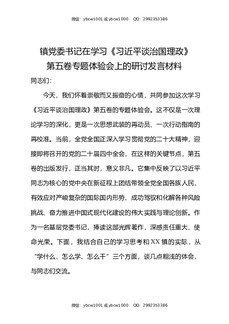镇党委书记在学习习近平谈治国理政第五卷专题体验会上的研讨发言材料.docx