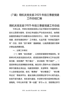 (7篇)局机关党支部2025年前三季度党建工作总结汇编.docx