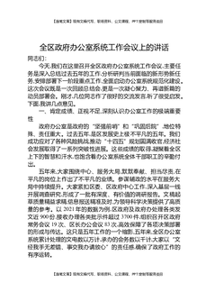 全区政府办公室系统工作会议上的讲话.docx