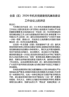 全县(区)2026年机关党建暨党风廉政建设工作会议上的讲话.docx