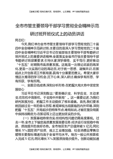 全市市管主要领导干部学习贯彻全会精神示范研讨班开班仪式上的动员讲话.docx