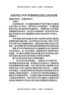 全校师生2026年清明祭扫活动上的讲话稿.docx