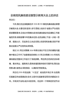 全镇党风廉政建设暨警示教育大会上的讲话.docx