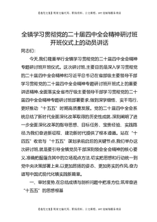 全镇学习贯彻党的二十届四中全会精神研讨班开班仪式上的动员讲话.docx