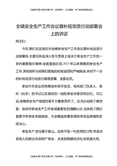 全镇安全生产工作会议暨补短攻坚行动部署会上的讲话.docx