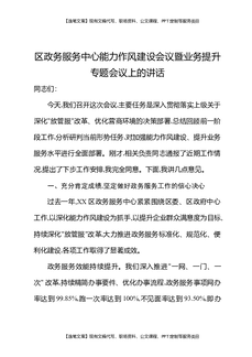 区政务服务中心能力作风建设会议暨业务提升专题会议上的讲话.docx
