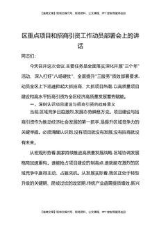 区重点项目和招商引资工作动员部署会上的讲话.docx