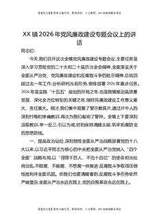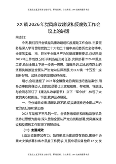 XX镇2026年党风廉政建设专题会议上的讲话.docx