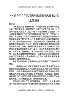 XX镇2026年党风廉政建设暨作风建设大会上的讲话.docx
