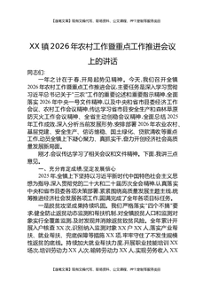 XX镇2026年农村工作暨重点工作推进会议上的讲话.docx