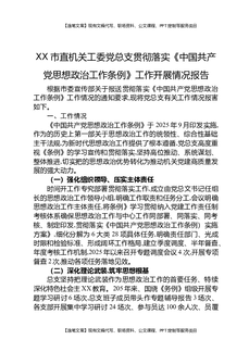 XX市直机关工委党总支贯彻落实《中国共产党思想政治工作条例》工作开展情况报告.docx