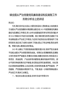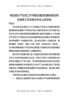 镇全面从严治党暨党风廉政建设和反腐败工作形势分析会上的讲话.docx