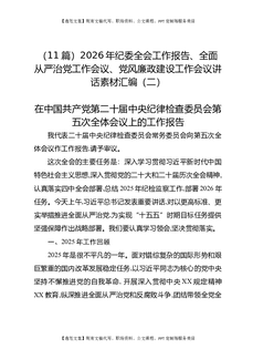 (11篇)2026年纪委全会工作报告、全面从严治党工作会议、党风廉政建设工作会议讲话素材汇编(二).docx