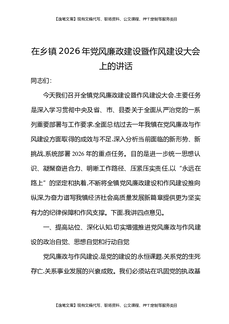 在乡镇2026年党风廉政建设暨作风建设大会上的讲话.docx