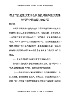 在全市党的建设工作会议暨党风廉政建设责任制领导小组会议上的讲话.docx