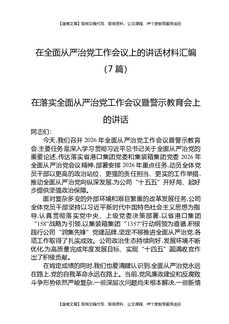 在全面从严治党工作会议上的讲话材料汇编(7篇).docx