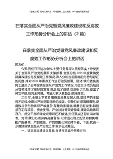 在落实全面从严治党暨党风廉政建设和反腐败工作形势分析会上的讲话(2篇).docx