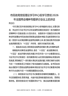 市民政局党组理论学习中心组学习贯彻2026年全国两会精神专题研讨会议上的讲话.docx