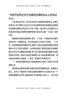 市经开区传达学习全国两会精神会议上的讲话.docx